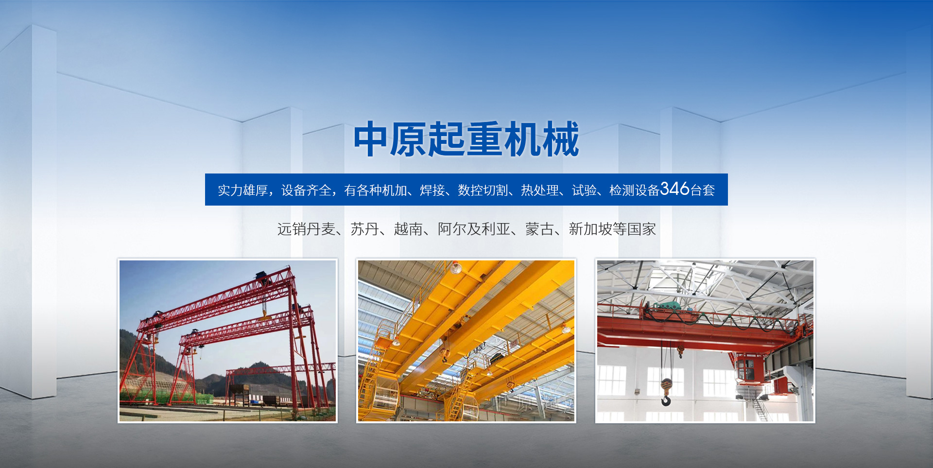新鄉(xiāng)市中原起重機械有限公司成立于2000年,地處中原,輻射全國28個省市自治區(qū),設(shè)外埠經(jīng)銷處、辦事處268個。產(chǎn)品行銷工礦、建材、化工、冶金、電力、交通、鐵路、油田、港口等各個行業(yè)。遠銷丹麥、蘇丹、越南、阿爾及利亞、蒙古、新加坡等國家。  公司實力雄厚,設(shè)備齊全,有各種機加、焊接、數(shù)控切割、熱處理、試驗、檢測設(shè)備7臺;有機加工、熱處理、單、雙梁橋門機生產(chǎn)、檢測、安裝等9個車間,研究中心、運輸公司、安裝維修服務(wù)公司等機構(gòu),?  主要產(chǎn)品有:LD型1~20噸電動單梁起重機系列產(chǎn)品;5~600噸通用橋式、門式、冶金、上旋轉(zhuǎn)下旋轉(zhuǎn)電磁吊、絕緣、抓斗、防爆起重機系列產(chǎn)品;LH3~100噸葫蘆雙梁系列產(chǎn)品;MH5~32噸葫蘆門式系列產(chǎn)品;0.5~40噸CD1、MD1鋼絲繩電葫蘆系列產(chǎn)品;HS1型0.5~20噸手動葫蘆系列產(chǎn)品;0.5~10噸環(huán)鏈電動葫蘆系列;0.5~40噸彎道電動葫蘆系列產(chǎn)品;裝卸橋、造船門機、架橋機、鑄造吊和水電大噸位起重機系列產(chǎn)品。  公司建立了強有力的質(zhì)量保證體系和生產(chǎn)過程的質(zhì)量控制系統(tǒng),嚴(yán)格執(zhí)行國家設(shè)計、生產(chǎn)標(biāo)準(zhǔn),有嚴(yán)格的生產(chǎn)工藝過程和標(biāo)準(zhǔn),嚴(yán)格的檢驗、檢測標(biāo)準(zhǔn)和手段。
